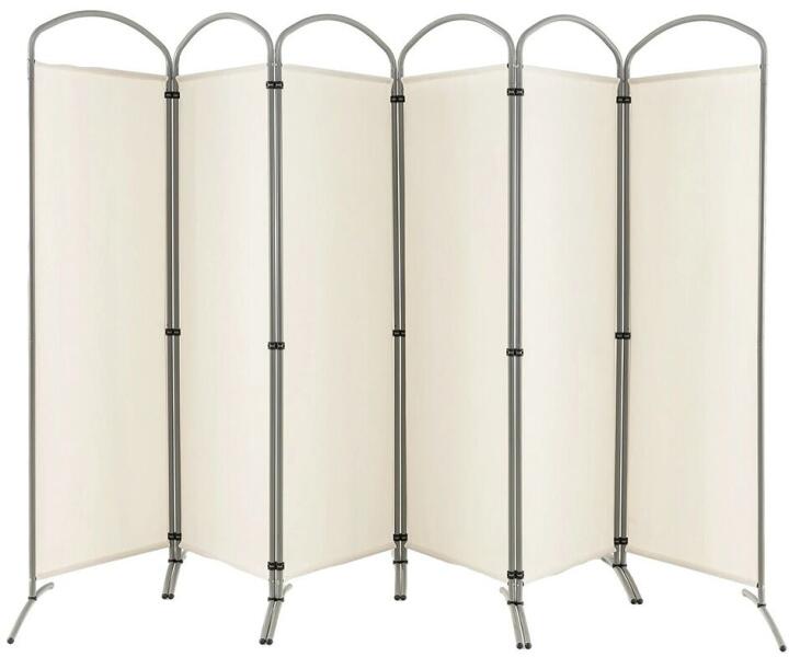 Timeless Tools 6 paneles paraván - Rugalmas térelválasztás stílusosan ? Ez a 6 paneles, összecsukható paraván tökéletes megoldás, ha gyorsan és egyszerűen szeretnél privát teret kialakítani otthonodban, irodádban vagy akár rendezvényeken. A légáteresztő poliészter anyag kellemes légkört teremt, míg a stabil fémváz hosszú távú használatot biztosít. Főbb előnyök:Rugalmas elrendezés: A 15 csatlakozóelem segítségével a panelek L- vagy W-alakban is felállíthatók, így könnyen alkalmazkodik a tér adottságaihoz. Használj 4, 5 vagy 6 panelt igény szerint. Könnyű tárolás: Az összecsukható designnak köszönhetően a paraván helytakarékosan tárolható, amikor nincs rá szükség. ?️ Sokoldalú felhasználás: Ideális otthonra, irodába, étterembe, szállodába vagy akár kórházba is. Ablak elé helyezve napellenzőként is funkcionálhat. ☀️ Stílusos design: A letisztult megjelenés bármilyen enteriőrbe illeszkedik. ✨ Egyszerű összeszerelés: A mellékelt útmutató segítségével pillanatok alatt felállítható. ?️ Stabilitás: Az ívelt fémlábak és a csúszásgátló talpak biztosítják, hogy a paraván stabilan álljon. Termékjellemzők:Jellemző ÉrtékAnyag Poliészter, fémSzín FehérMéret kinyitva 330x51x188 cm (hossz × szélesség × magasság)Méret összecsukva 107x15x188 cm (hossz × szélesség × magasság)Panelok száma 6Csatlakozók 15 dbÖsszecsukható IgenCsomag tartalma: 6 db panel 15 db csatlakozó Szerelési útmutató