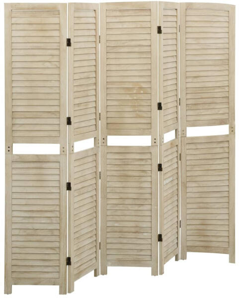 Teremtsen kifinomult és látványos megoldást szobája felosztására ezzel a stílusos paravánnal! Prémium minőségű anyag: A tömör császárfa egy gyönyörű természetes anyag. Kezelje a felületet olajjal, viasszal, lakkal vagy mázzal az erősebb felület kialakítása és az egyszerű tisztítás érdekében. A császárfa kifejezetten ellenáll a rovaroknak és a rothadásnak. Sokoldalú felhasználás: Ez a szabadon álló paraván dekorációként vagy térelválasztóként is használható. A hálószobában elkülönített, privát öltözőhelyet teremthet vele, vagy leválaszthat egy részt bármely helyiségből. Szellőző kialakítása: A térelválasztó paraván szellőzőnyílásokkal rendelkezik, amelyek lehetővé teszik a fény bejutását és a jó légáramlást. Összecsukható panelek: Használaton kívül a helytakarékosság érdekében összecsukható. Figyelem:A dőlés megakadályozása érdekében a terméket a mellékelt tartóelem segítségével rögzíteni kell a falhoz.